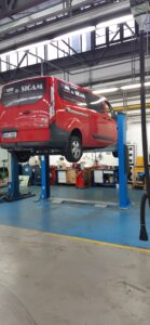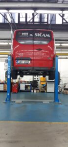Montáž 2-sloupového zvedáku s pomocným rámem EE-62BE-35T s pomocným základovým rámem z důvodu nedostatečné pevnosti podlahy servisu.