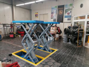 Montáž nůžkového zvedáku EE-6503 s nosností 3500kg do podlahy. Zde varianta s možností prodloužení plošin vpředu i vzadu.